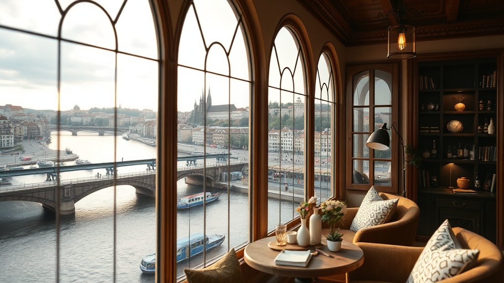 제가 묵었던 방은 더블룸 블타바 리버뷰였어요. 블타바강이 보이는 창문과 아늑한 침대가 인상적이었죠. 방은 넓었고, 우드 & 화이트 인테리어 덕분에 편안한 느낌이었어요. 창문 위치가 살짝 아쉽긴 했지만, 아침저녁으로 블타바강을 바라보는 건 정말 낭만적이었답니다.