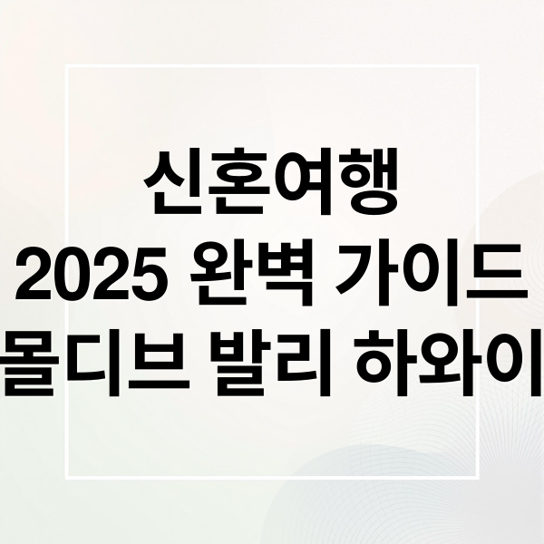2025년, 꿈에 그리던 신혼여행을 어디로 떠나야 할지 고민이신가요? 몰디브, 발리, 하와이 등 인기 여행지의 매력과 예산을 총정리하여 예비 신혼부부의 선택을 돕는 가이드를 준비했어요. 2025년 신혼여행 트렌드를 분석하고, 후회 없는 선택을 할 수 있도록 도와드릴게요. 지금부터 2025년 신혼여행, 완벽하게 준비해 볼까요?