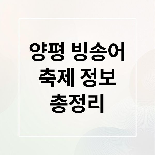 2025년 겨울, 양평 빙송어 축제에서 특별한 추억을 만들어 보세요! 낚시의 짜릿함, 맛있는 먹거리, 주변 관광 명소까지 완벽한 겨울 여행을 즐길 수 있어요. 2025년 12월부터 시작되는 축제를 꼼꼼하게 준비해서 잊지 못할 추억을 만들어 보세요!